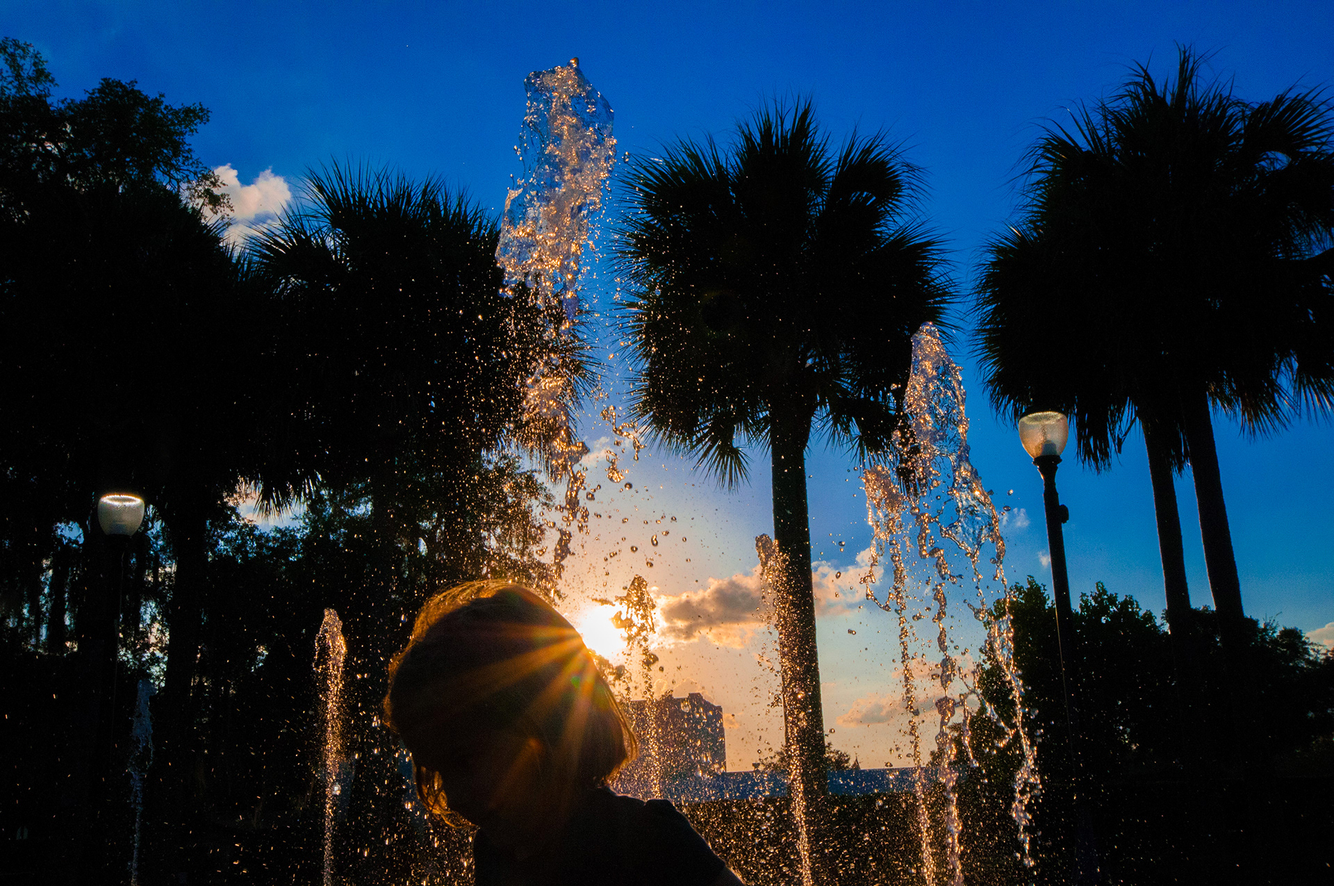 A child plays in the cool fountain of the revitalized Winter Garden, Florida at sunset as we witness this splash of color...